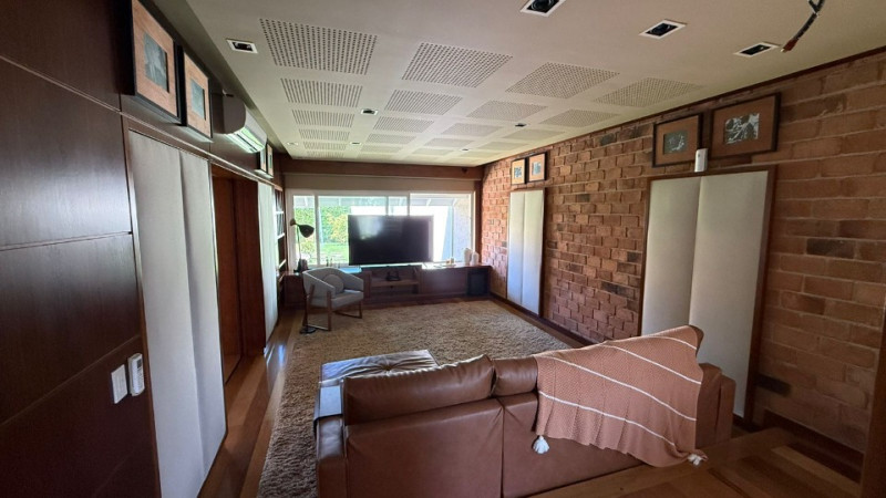 * Sala de estar integrada com cinema acústico preparado para equipamentos profissionais