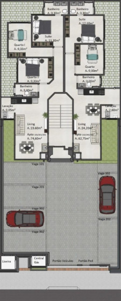 Área privativa de até 74,60m²